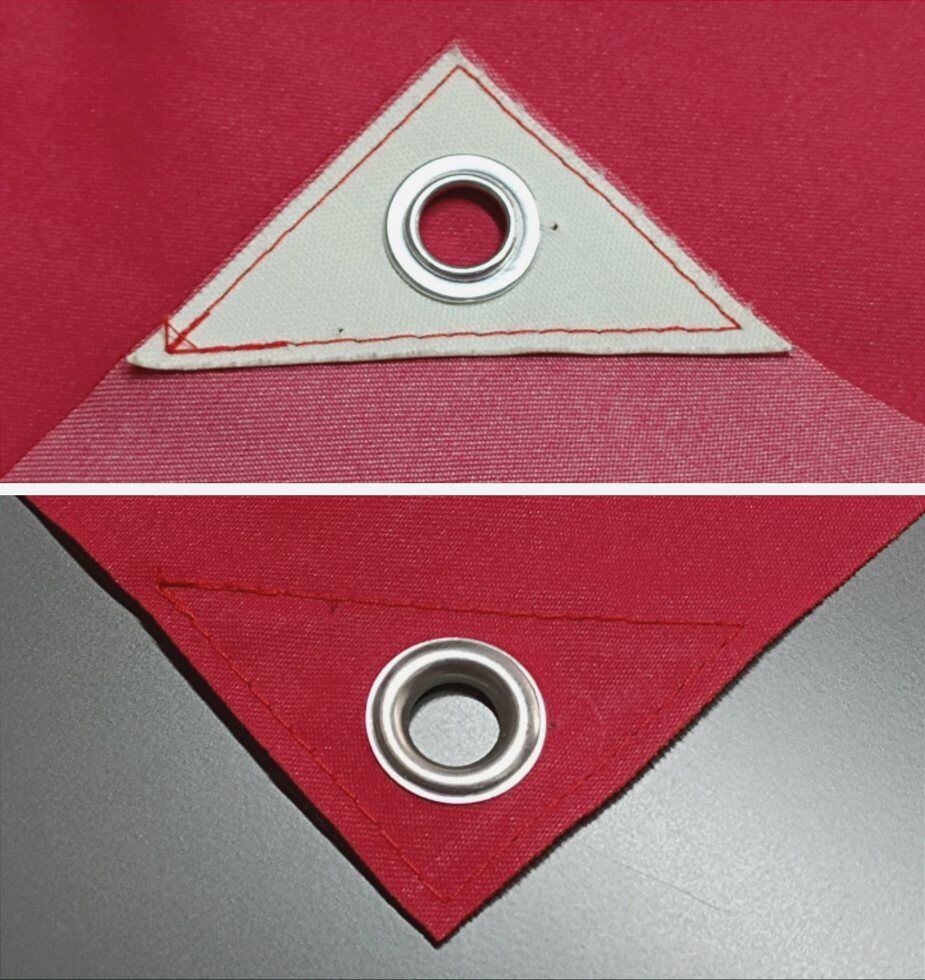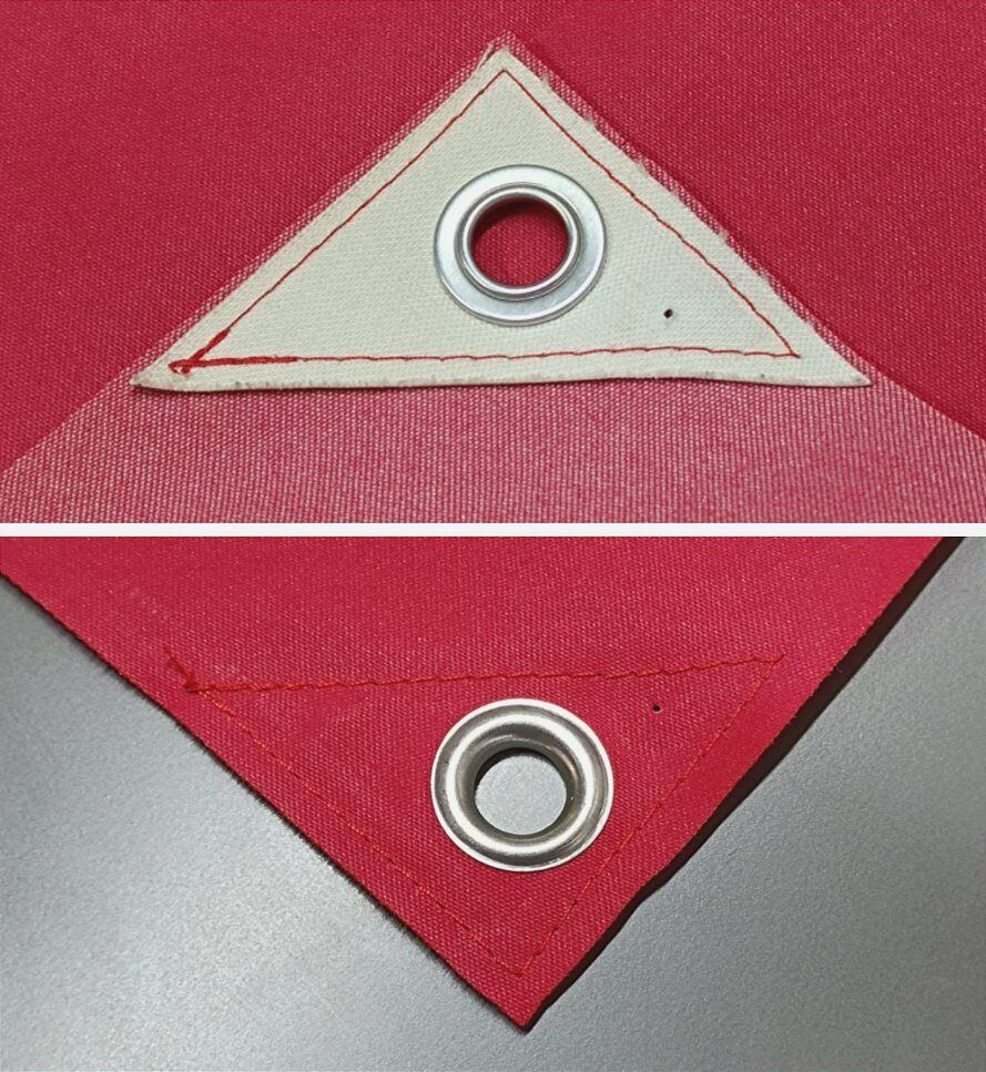 四方角のハトメ周辺に画鋲穴があります。
