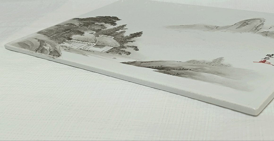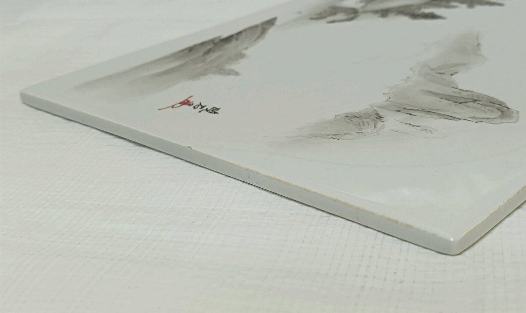・骨董品 在銘:暁石 【真作】陶板手描き水墨絵画