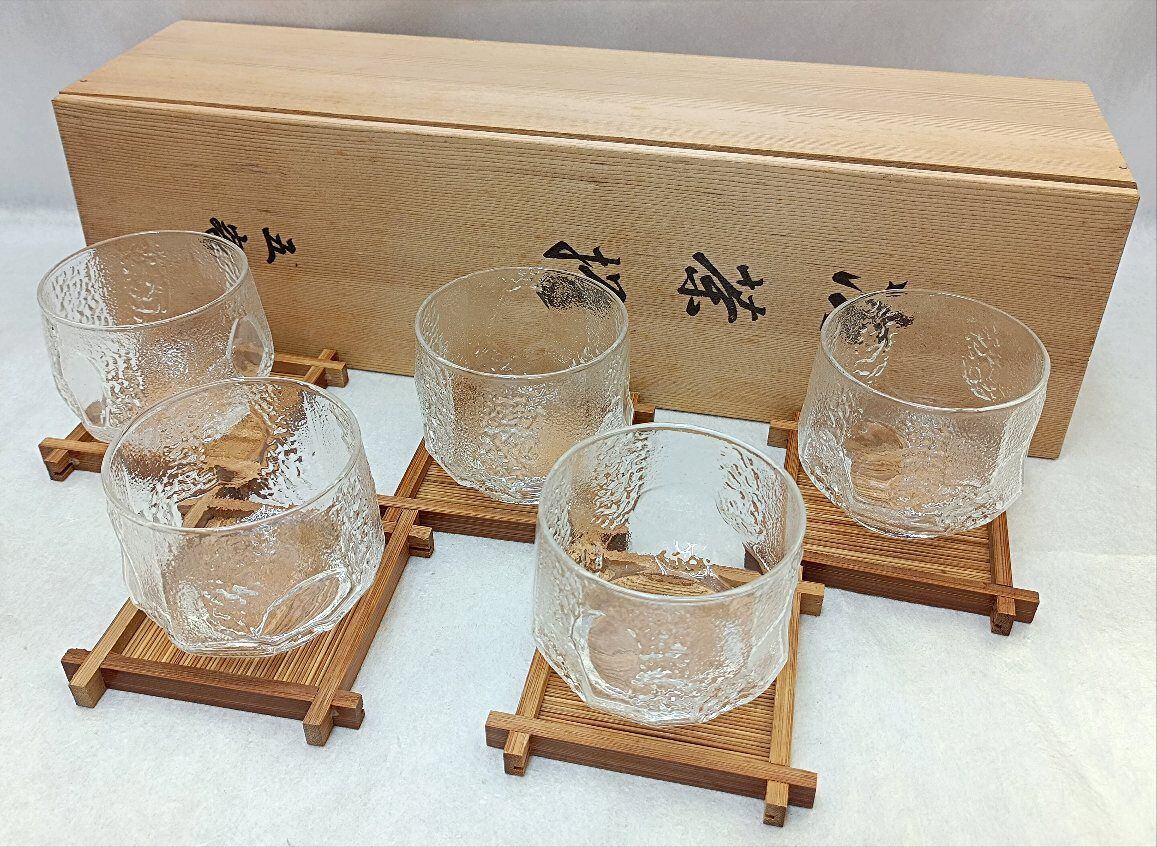 未使用品 茶道具 佐々木ガラス 冷茶揃/5客 竹製茶托・木箱付