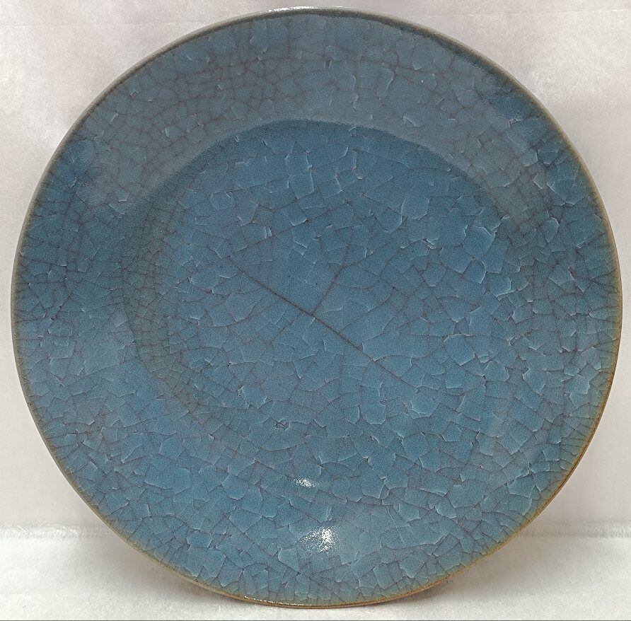 未使用品 京都/清水焼 青瓷 利宋窯 氷裂紅貫入大皿/飾り皿