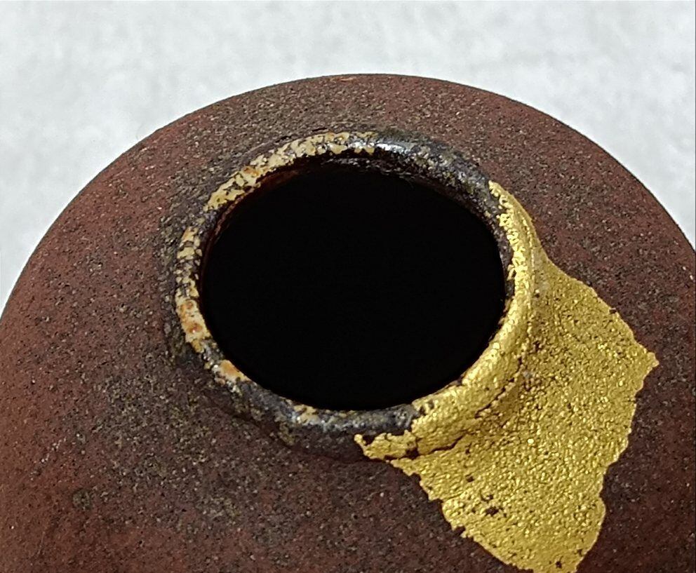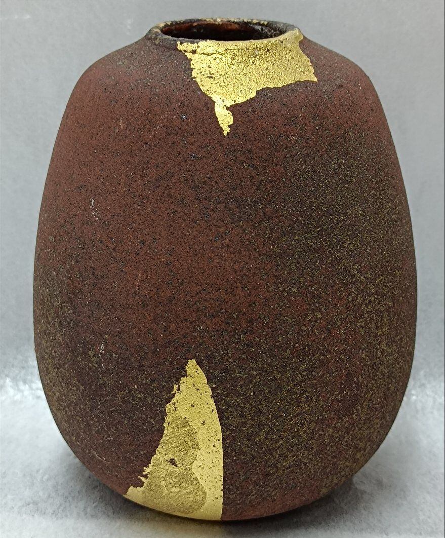 美品 九谷焼 北村隆造 灰釉金彩花瓶/一輪挿し