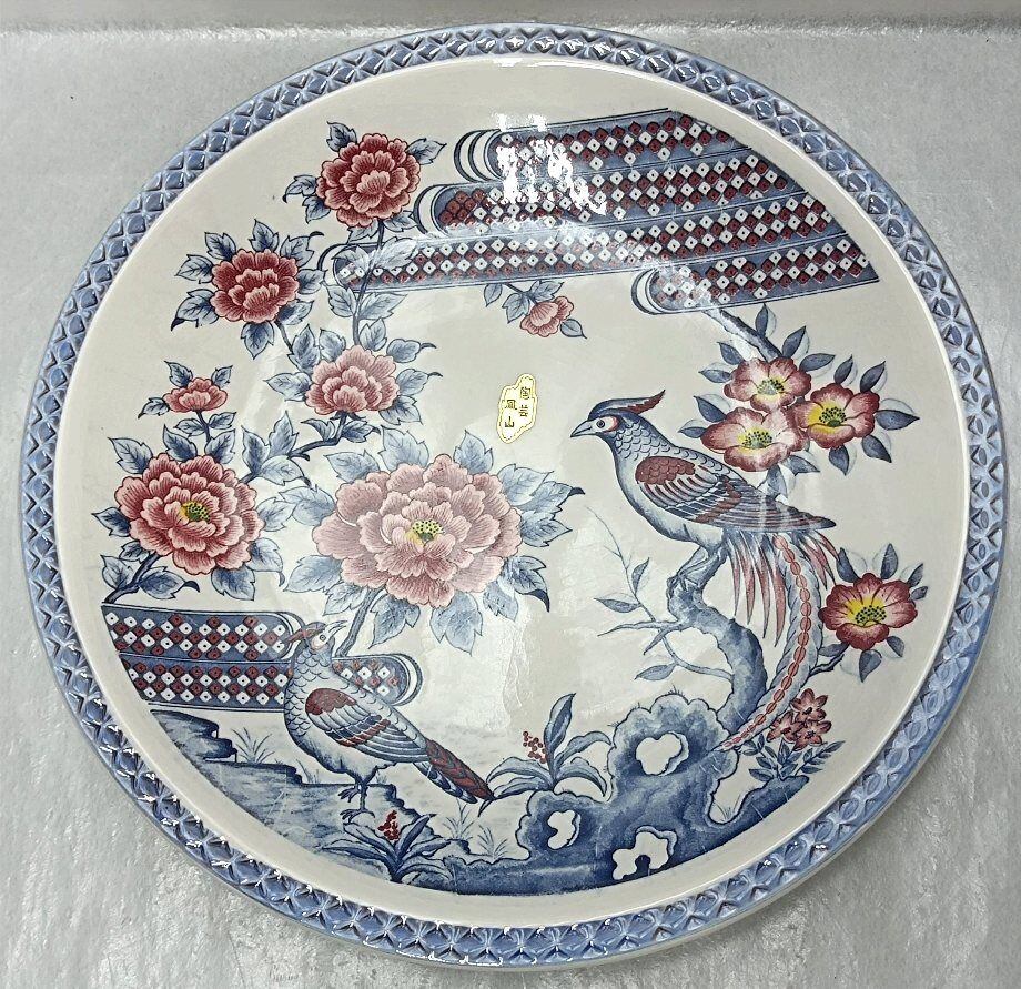 未使用品 有田焼 鳳山窯 染付赤絵花鳥紋 飾り皿/大皿 径32.5cm