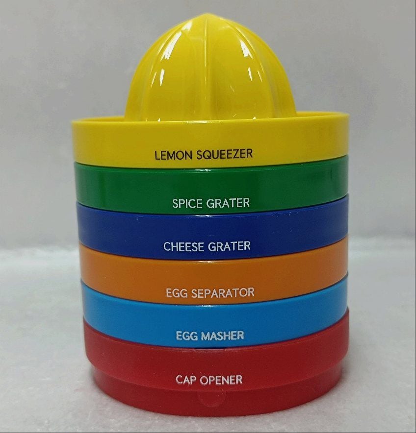 ロートアタッチメント・ロート・レモン絞り・薬味おろし・玉子つぶし・チーズおろし・キャップオープナー・黄身取り・軽量キャップのセットとなります。