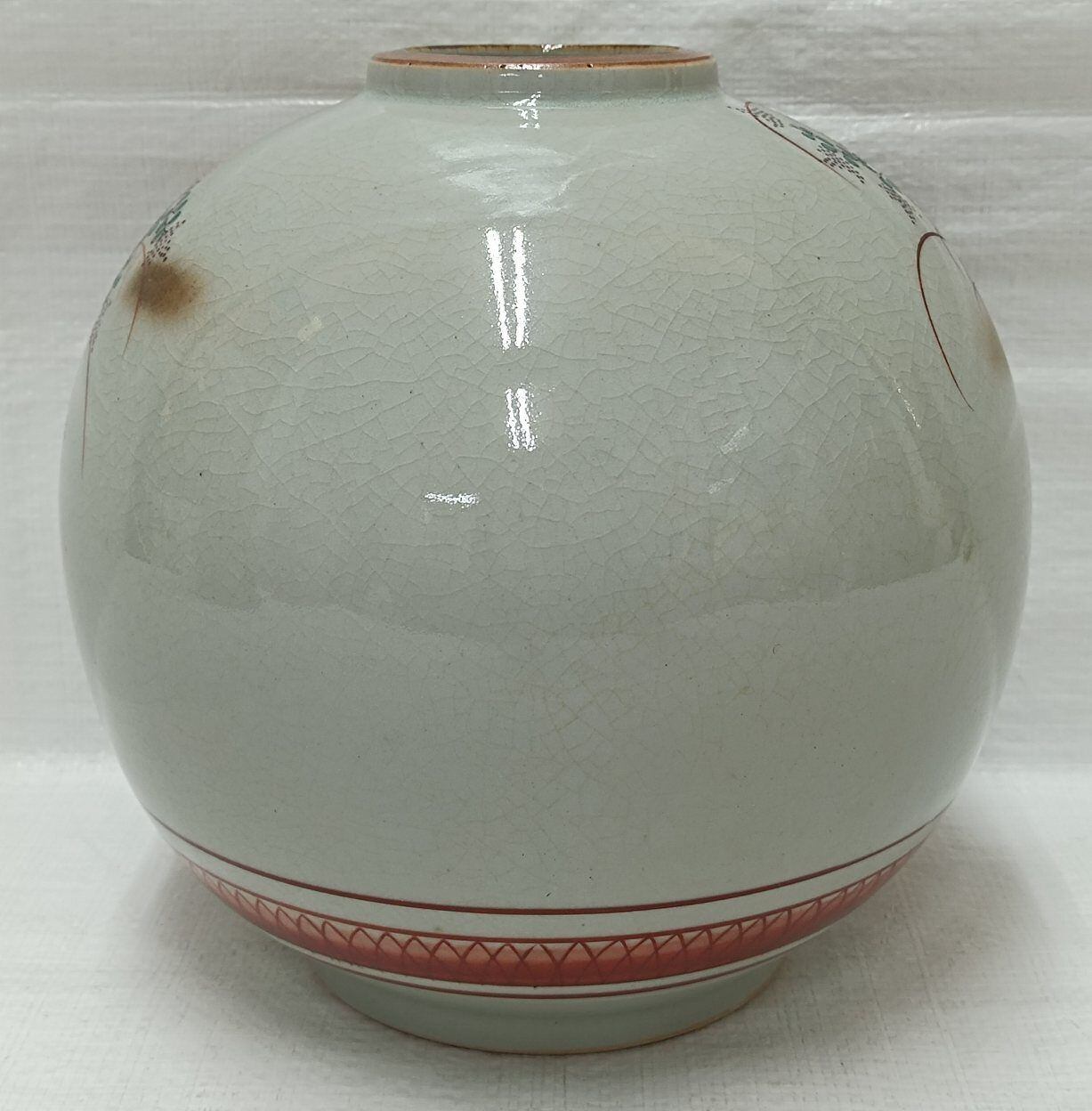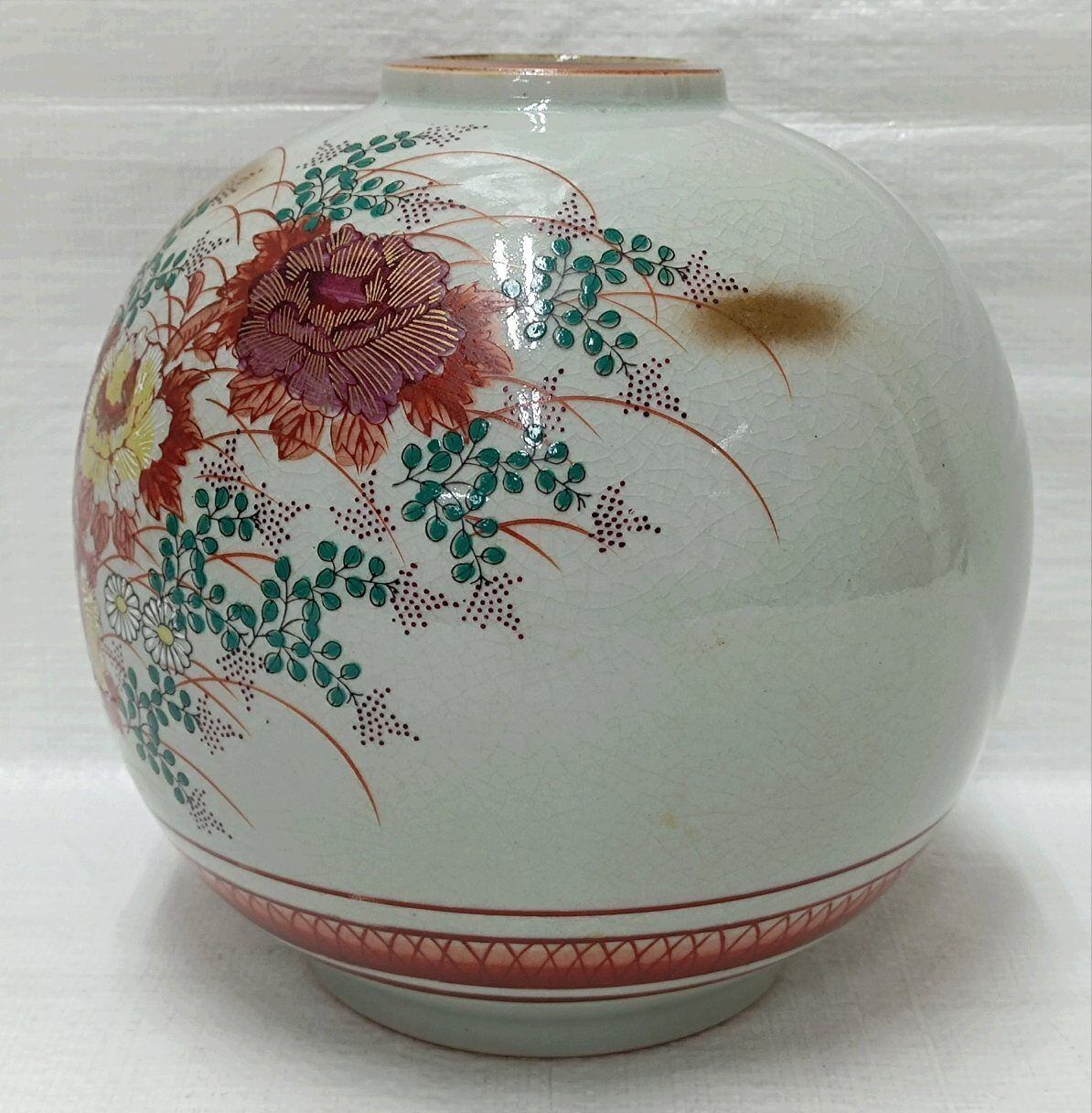 古い 九谷焼 洋山造 金彩赤絵牡丹紋 花瓶 飾り壺